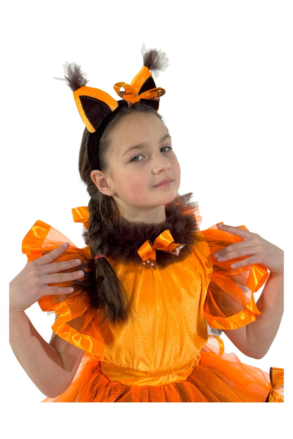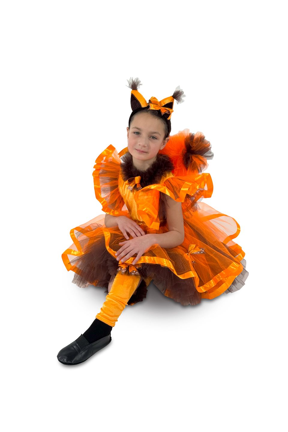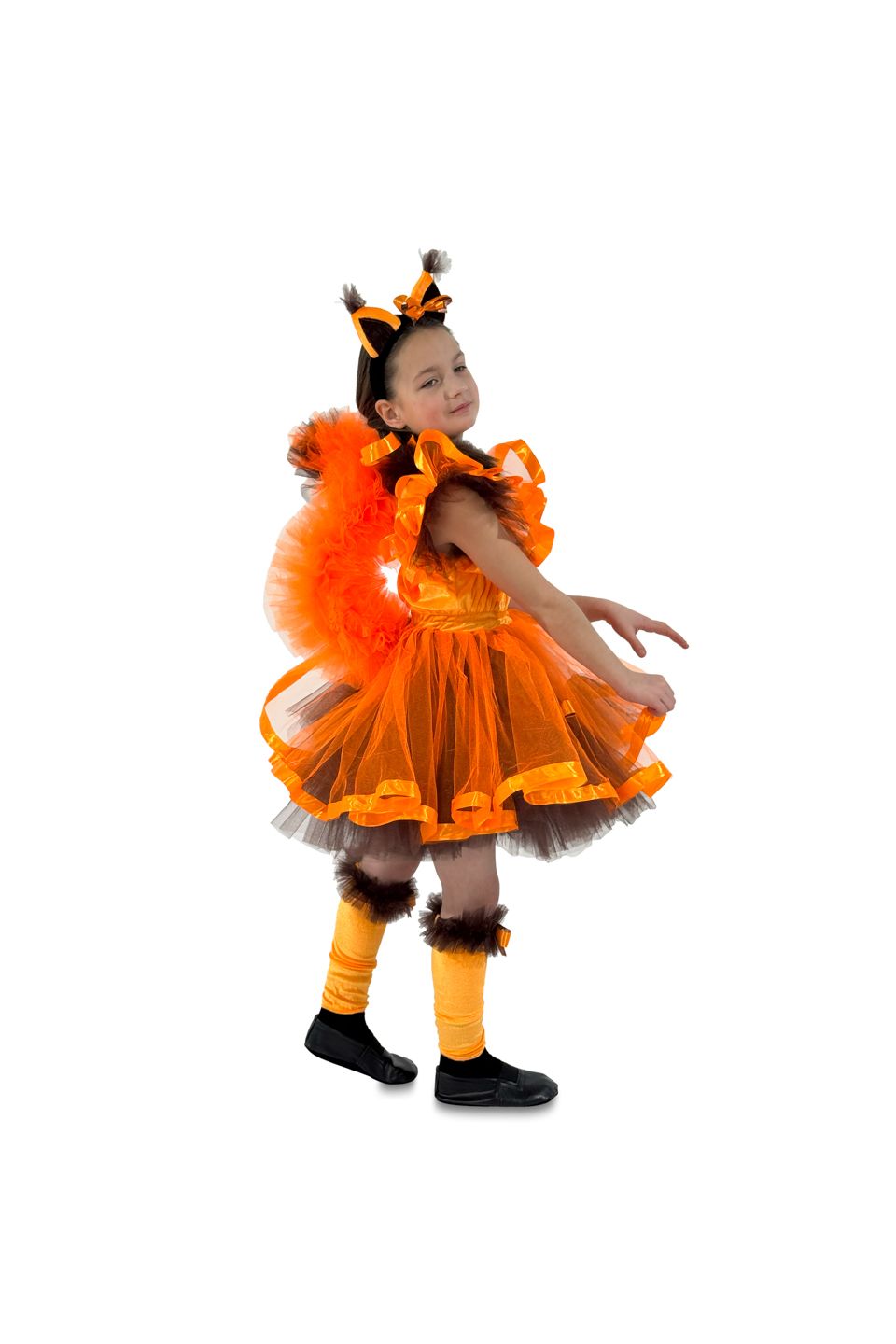 В состав карнавального костюма Белочка"Ореховая фея" входят: платье с пушистым хвостом, гетры ,головной аксессуар с ушками