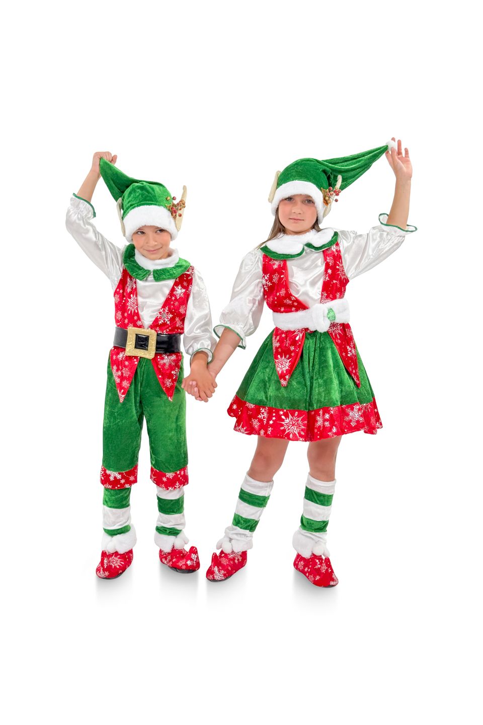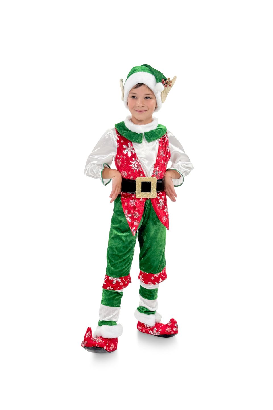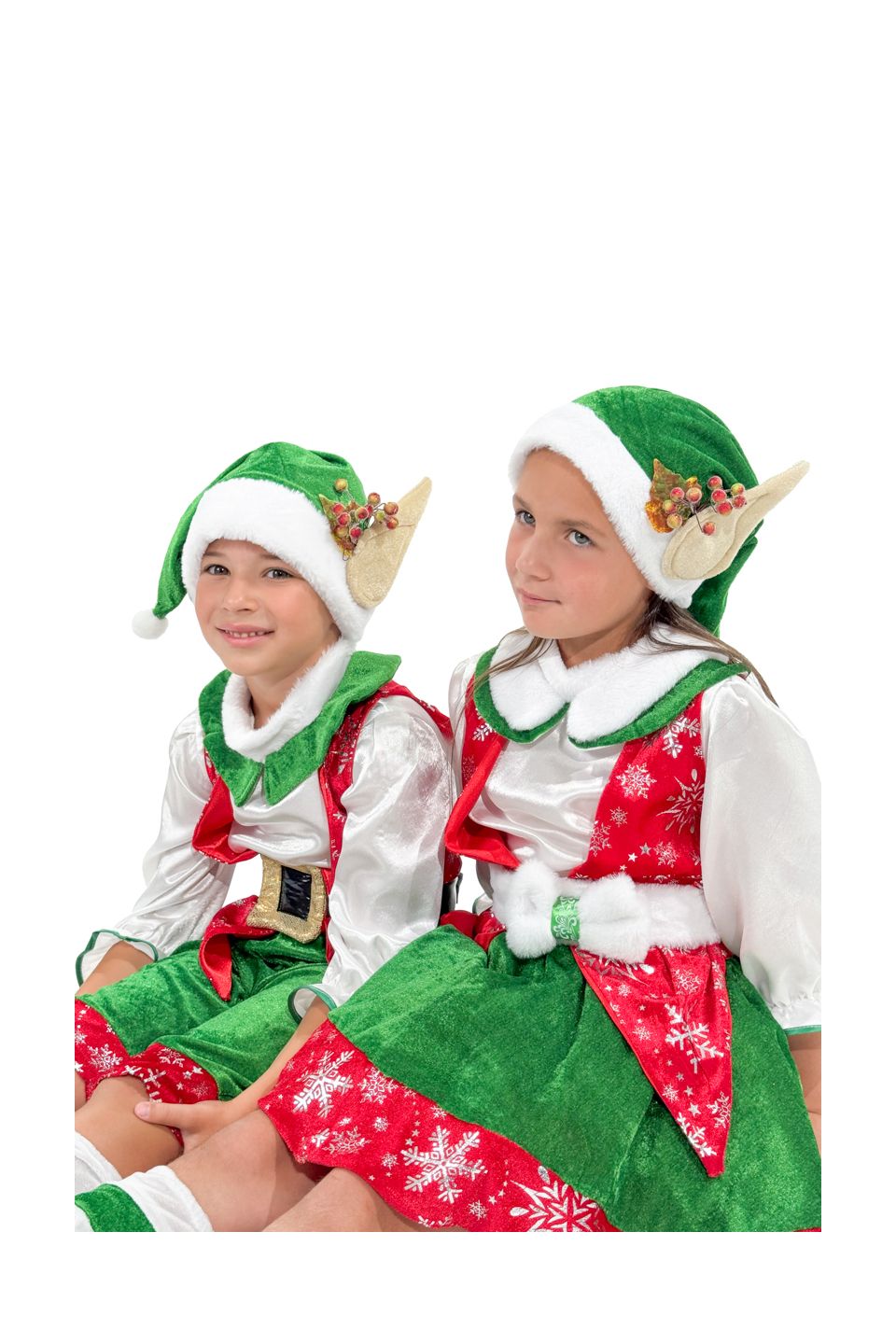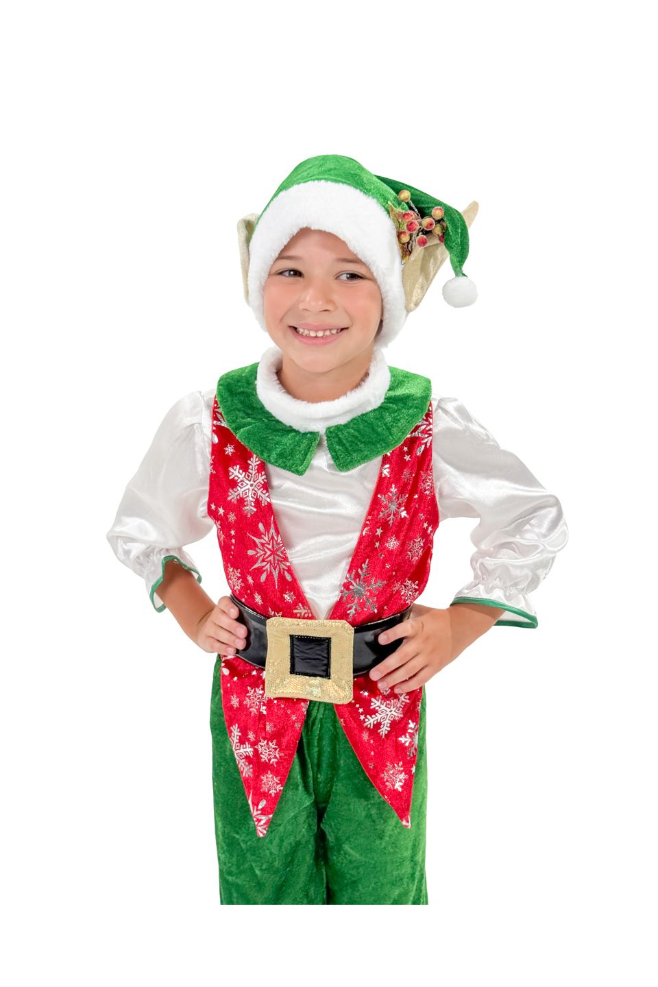 До складу карнавального костюма "Ельф казковий" входять: штани, сорочка, жилет, пояс, капелюх, взуття, гетри.